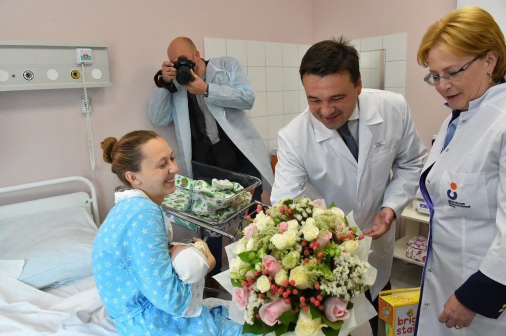 Скорцова и Воробьев также поздравили две семьи, чьи малыши первыми родились в новом центре, который открылся 30 августа.