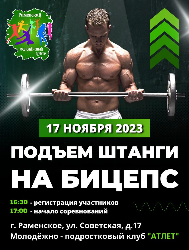 Раменский молодежный центр приглашает поучаствовать в открытых спортивных соревнованиях по подъему штанги на бицепс, которые будут проходить 17 ноября в молодежно-подростковом клубе «АТЛЕТ».