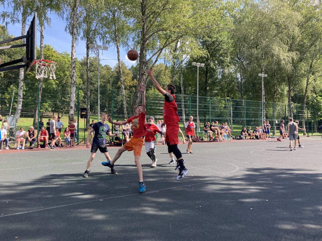 Соревнования по стритболу в Раменском городском парке собрали на баскетбольной площадке много народа. Пришли и простые болельщики и страстные любители этого спорта, так и участники соревнований.