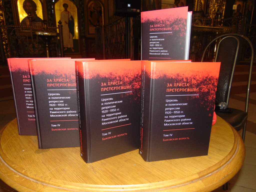 В этом году из печати вышел уже 4 том исторического проекта «За Христа претерпевшие», который посвящен описанию событий, происходивших на приходах Быковской волости Бронницкого уезда. Его презентация состоялась в субботу, 23 ноября, в Петропавловском храме п.Ильинский. Место проведения было выбрано неслучайно. В годы, о которых идет речь в книге, п.Ильинский как раз был частью Быковской волости.