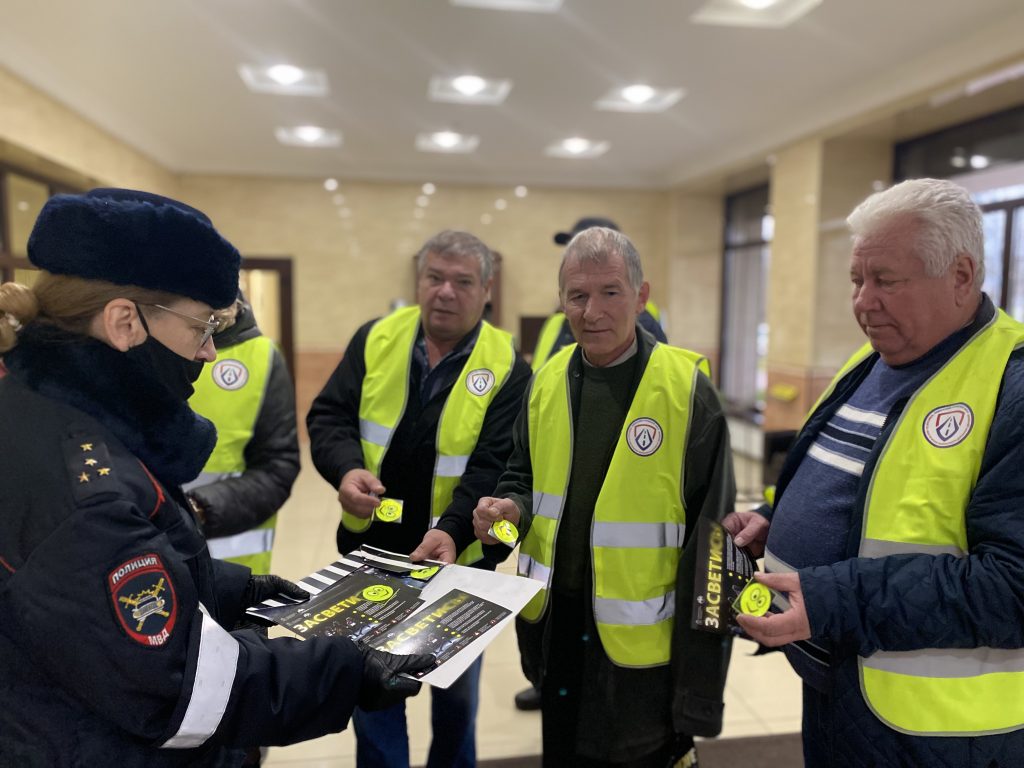Кроме того, сотрудники полиции показали присутствующей аудитории тематические видеоролики и вручили разнообразные аксессуары, которые помогут пешим участникам дорожного «засветиться» в темное время суток.