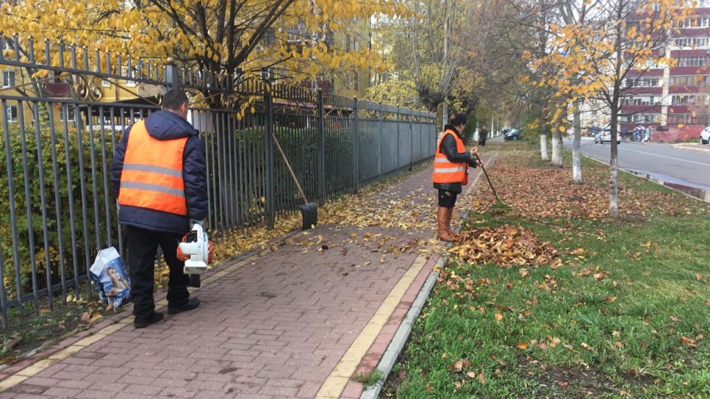 Уборка ведется на территории городского поселения Раменское: бульварах, площадях, придомовых территориях, проездах, тротуарах.