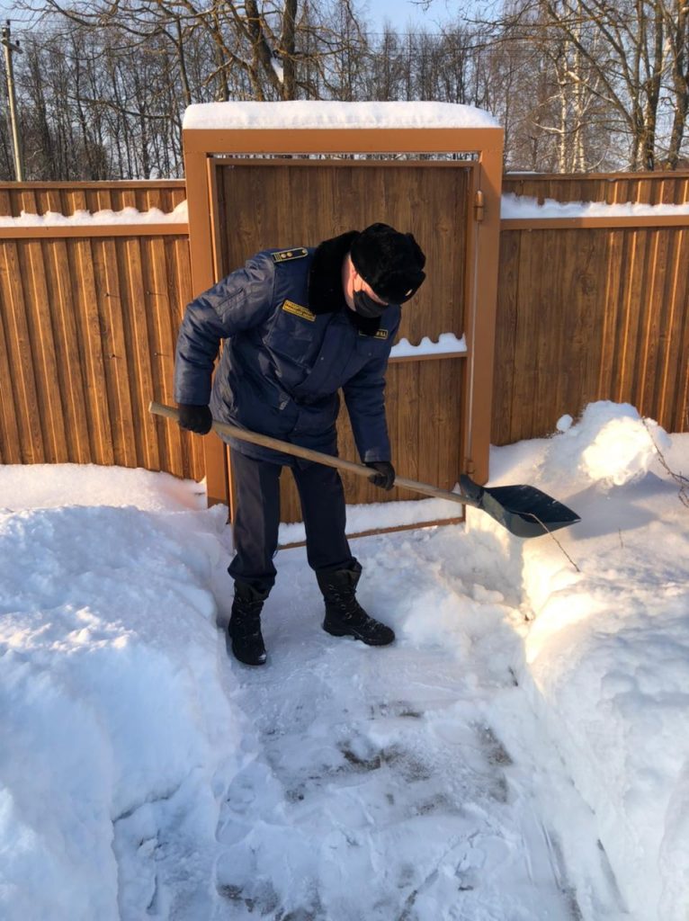 Прилегающая территория к участку, на котором проживает пенсионерка после обильных снегопадов засыпало снегом. Прибыв по окончании рабочего дня к женщине с собственным инструментом, инспекторы и представители общественной организации «Молодая Гвардия» очистили дорожки, накололи дрова, сложили поленницу.