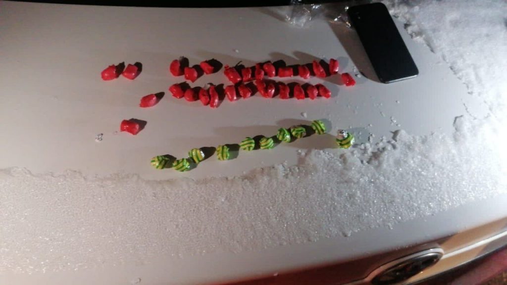Правоохранители остановили неизвестного и в ходе досмотра, в рюкзаке гражданина было обнаружено 29 свертков из изоленты красного цвета и 10 свертков желто-зелёного цвета с неизвестным веществом внутри.