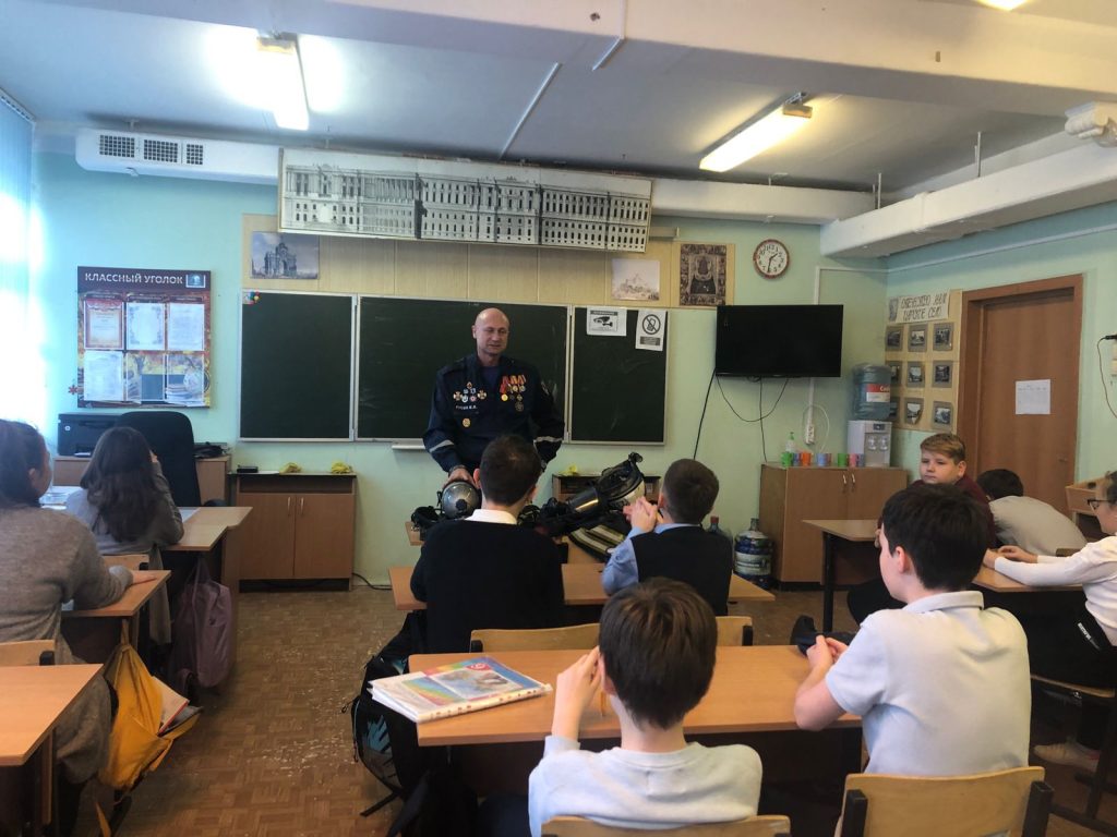 Спасатели 232-й пожарно-спасательной части Люберецкого ТУ ГКУ МО «Мособлпожспас» провели урок безопасности в Жуковской средней общеобразовательной школе №12 Раменского городского округа.