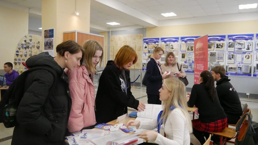 В холле первого этажа главного учебного корпуса ГГУ прошла выставка профессий, где студенты могли ознакомиться с представленными брошюрами и видеороликами работодателей.