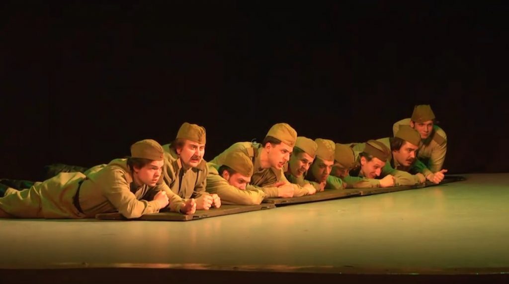 Декораций в спектакле было не много. Но актёрам удалось максимально реалистично воссоздать сцены укрытия в окопе, показать эмоциональное состояние уставших солдат после того, как они покинули поля, где остались лежать их товарищи.