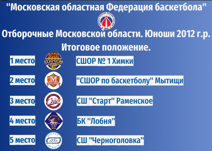 В отборочных соревнованиях Московской области по баскетболу среди юношей 2012 г.р. команда «Сатурн» (СШ «Старт») заняла 3-е место, обеспечив себе участие в первенстве России.