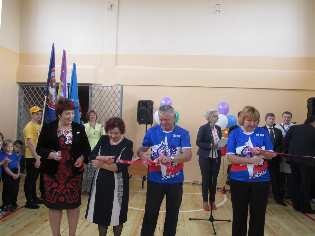 8 сентября в Гжельской школе состоялось торжественное открытие спортивного зала после капитального ремонта. Как рассказала нам директор школы Надежда Туляшова, спортивный зал капитально не ремонтировался с 1975года. Это долгожданное событие состоялось в преддверии нового учебного года благодаря средствам, выделенным районной администрацией. Для 345 учащихся, обучающихся в школе, это большой праздник. Обновленный, светлый и красивый зал сдан вместе с зеркальным хореографическим классом и раздевалками. Это событие стало поводом для проведения большого праздника спорта, на котором чествовали любимого школьного учителя физкультуры – Владимира Буркова, вырастившего ни одно поколения гжельцев, а также гостей. На празднике присутствовала глава с/п Гжельское Галина Голинкова, строители, сумевшие быстро и качественно выполнить все намеченные работы, родители, педагоги, учащиеся.