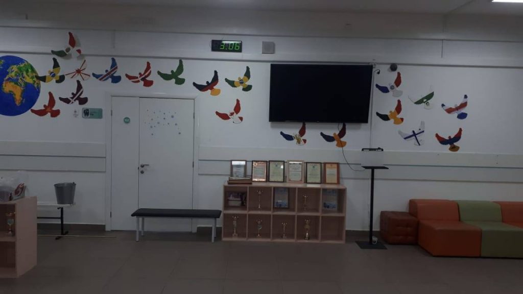 Ребята проводят генеральную уборку столовой, творчески оформляя стены обеденного зала в стиле французской художницы Карлы Жерар. Получается ярко и жизнерадостно… Мальчики вместе с учителем технологии украсили фойе первого этажа птицами-флагами иностранных государств. Как и подобает школе с лингвистическим уклоном!