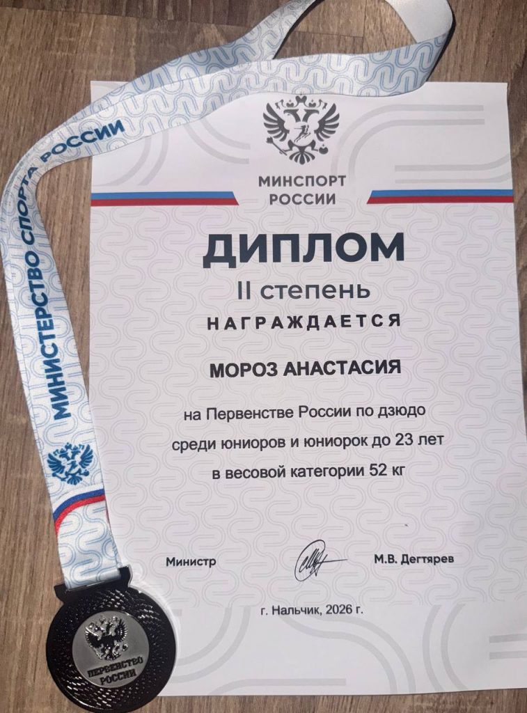 Путь к пьедесталу оказался непростым: 5 поединков, 4 победы. И по итогу Анастасия поднялась на пьедестал с серебряной медалью и получила путёвку в состав сборной России по дзюдо.