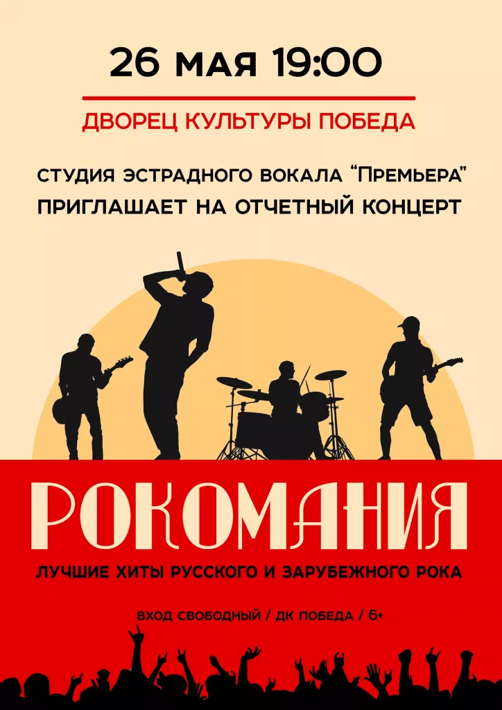 Хиты российской и зарубежной рок-музыки прозвучат на концерте «Рокомания». Их исполнит студия эстрадного вокала «Премьера» в ДК «Победа».