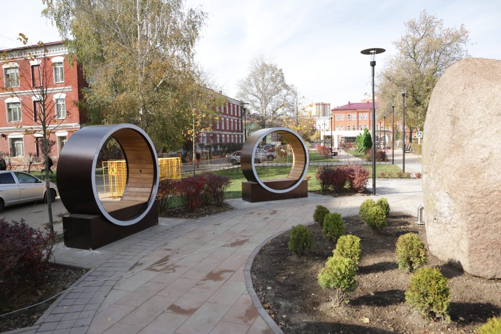 На бульваре работает уличное освещение, и сейчас ведется строительство перголы, которая станет визитной карточкой новой зоны отдыха.