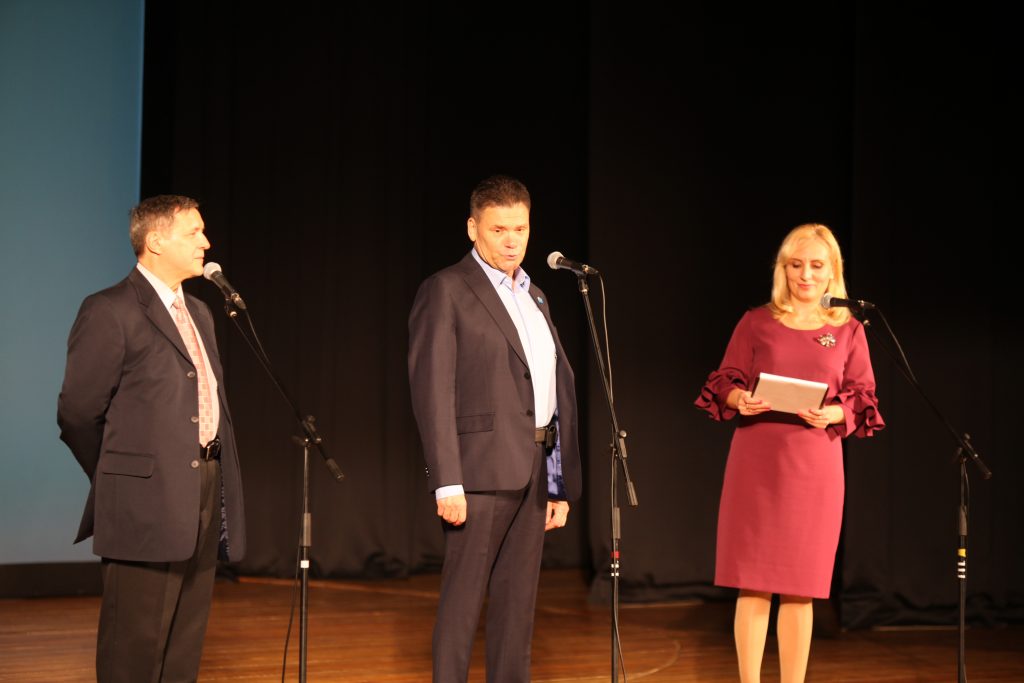 На большом экране в подтверждение сказанному появились видео-ролики о депутатах, их жизни и работе, о встречах с жителями и достижениях. И, наконец, была озвучена главная интрига: у Владимира Николаевича и Ивана Ивановича день рождения 4 октября. Один – технарь с душой музыканта, который прошел путь от инженера до заместителя генерального директора РПКБ, был заместителем председателя Совета депутатов; другой – профессиональный журналист с 35-летним стажем, 28 лет из которых редактирует и выпускает первую независимую газету на юго-востоке Подмосковья – газету «Грань» , сочиняет стихи, поет, пишет прозу, песни, романсы.