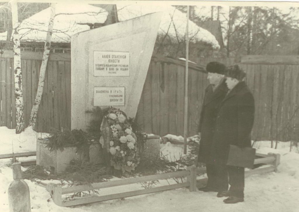 Опаленная юность…Эти слова звучат как пароль. И пусть отзывом на него всегда будет короткое и емкое слово- ПАМЯТЬ. На улице Опленной юности был установлен обелиск памяти школьников.