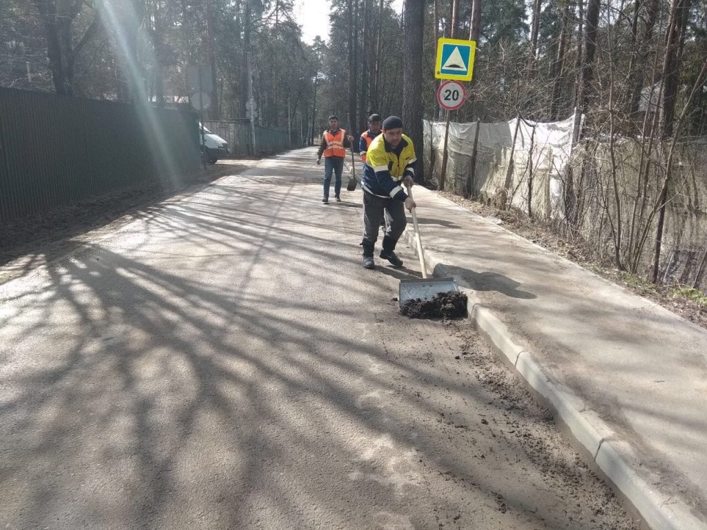 Сегодня выполнены работы по уборке прибордюрной части тротуара в городе Раменское на улице Пограничная.