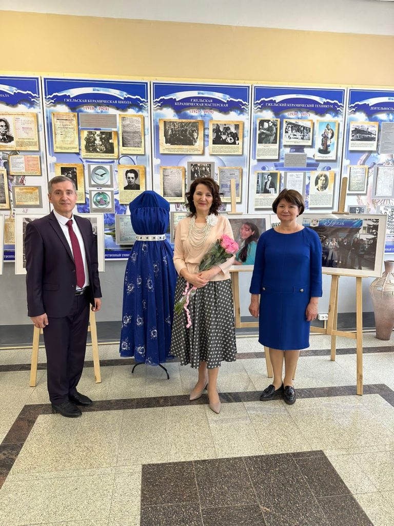 Директор ТУ Новохаритоновское Нина Ширенина поздравила Ирину Викторовну с юбилейной датой и открытием выставки. Выразила слова восхищения представленными на экспозиции уникальными произведениями, поблагодарила талантливого художника и педагога, уважаемого наставника молодежи за вклад в развитие искусства гжельского промысла.