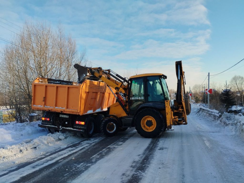 На кадрах коммунальные службы вывозят снег в Софьино.