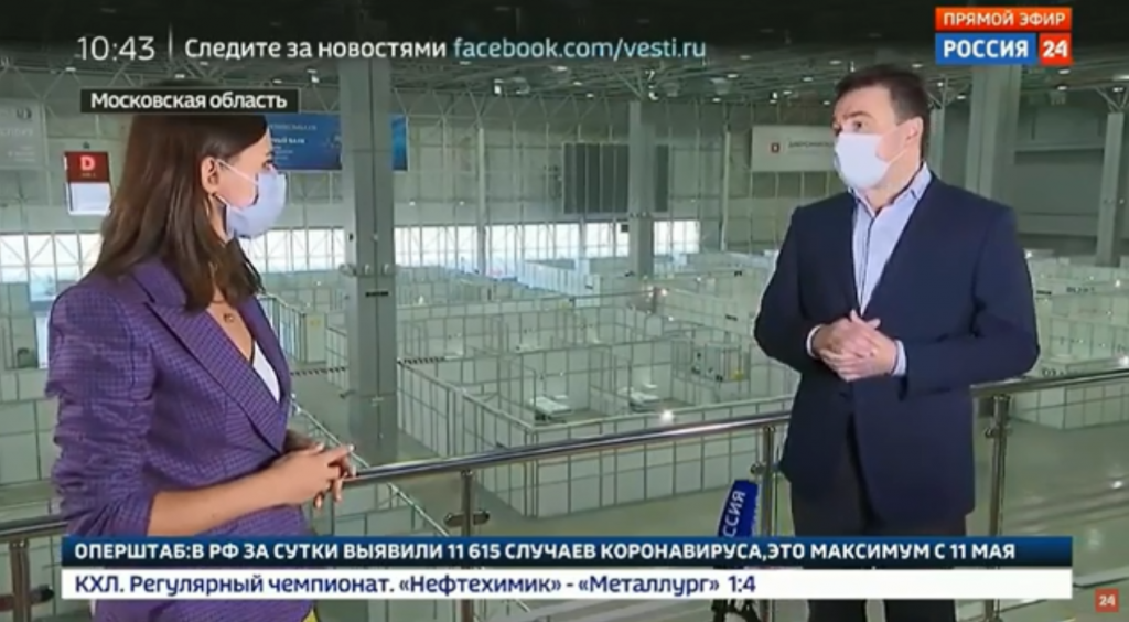 Андрей Воробьев в прямом эфире на телеканале «Россия 24» рассказал, что сейчас в МО развернуто 42 госпиталя, при этом свободными остаются 36% коек.