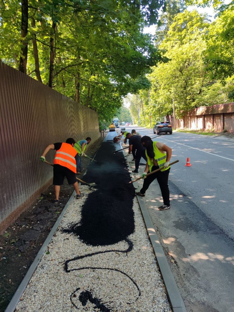 В рамках улучшения пешеходной инфраструктуры бригада рабочих произвела асфальтирование тротуара, расположенного вдоль Раменского шоссе в поселке Кратово. Кроме того, для обеспечения надлежащего водоотведения и предотвращения подтоплений была проведена прочистка канавы на улице Восточной, находящейся на границе поселков Кратово и Ильинский.