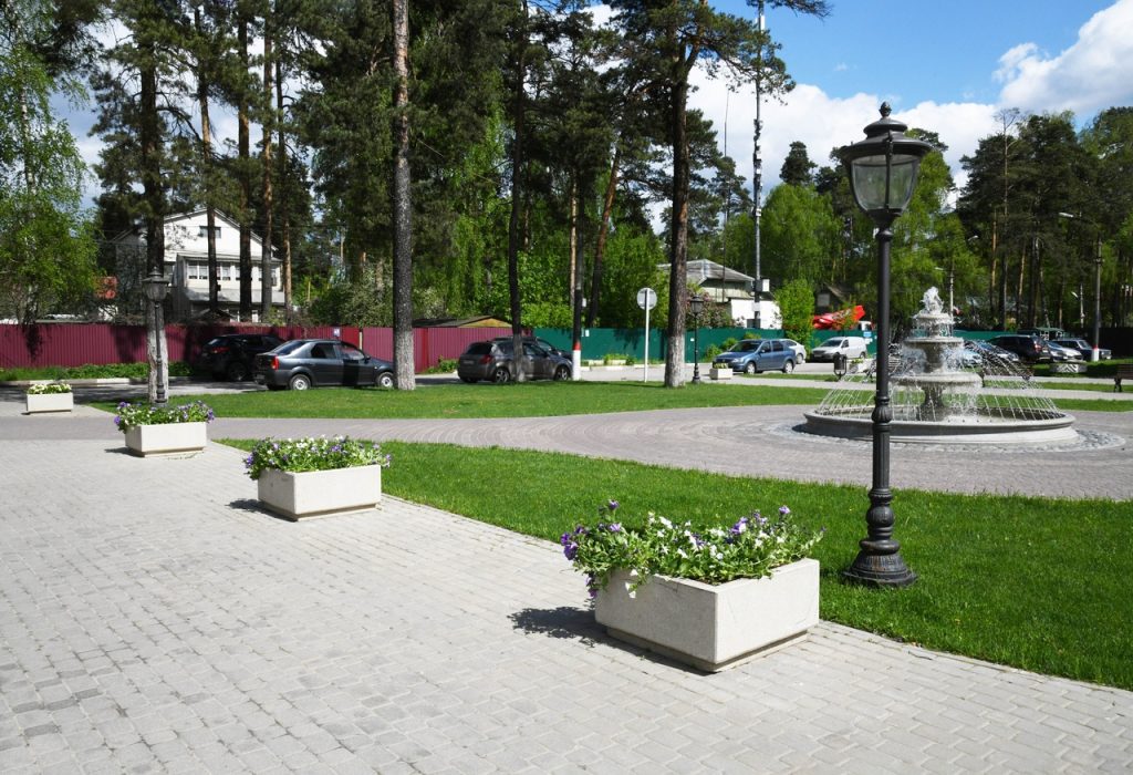 На днях были высажены цветы, приведены в порядок и включены фонтаны. Ведутся работы по покраске бордюров и нанесению дорожной разметки.