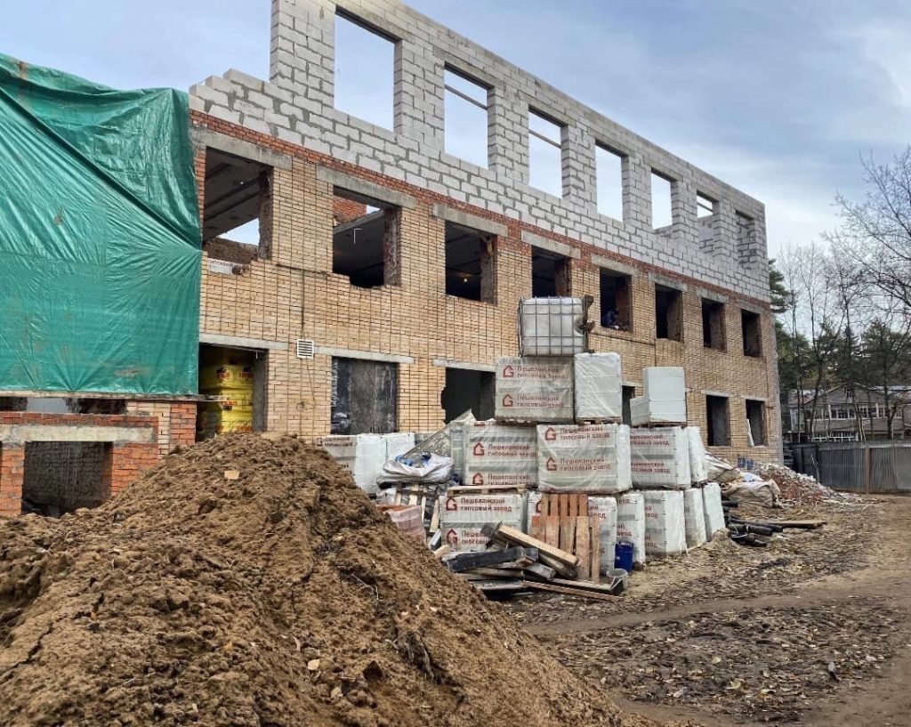 На сегодняшний день закончены работы по усилению внутренних стен и колонн подвала и первого этажа, ведутся работы по расширению здания и возведению наружных ограждающих конструкций, черновой отделке, ведётся прокладка инженерных коммуникаций в подвале и устройство наружных теплосетей.