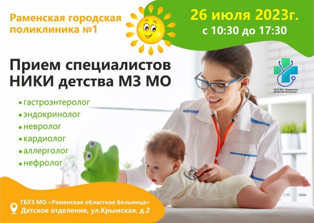 26 июля с 10:30 до 17:30 передвижной медицинский автобус ГБУЗ МО «Научно-исследовательский клинический институт детства Министерства здравоохранения Московской области» осуществит выезд врачебного десанта к маленьким пациентам Детского отделения Раменской городской поликлиники №1 на ул.Крымская, д.2.