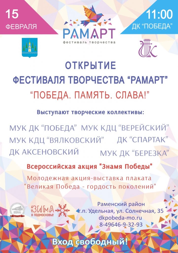 округа. Мероприятия пройдут в ДК «Победа», КДЦ «Гжельский», ДК «Кузяевский», ДК