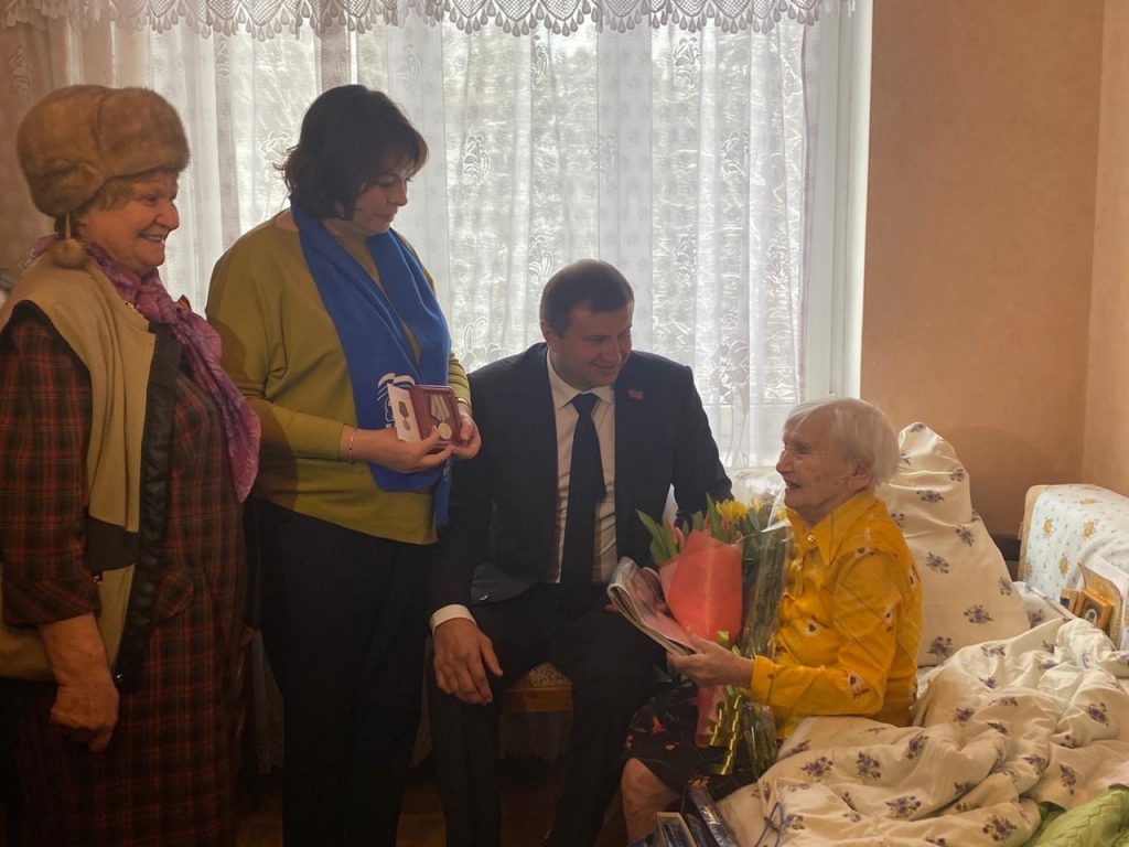 В гости к ветерану пришли председатель Совета депутатов Раменского г.о., секретарь местного отделения Всероссийской политической партии «Единая Россия» Раменского городского округа Юрий Ермаков, заместитель руководителя фракции Всероссийской политической партии «Единая Россия» в Совете депутатов Раменского городского округа Нина Широкова и руководитель Раменского местного отделения «Молодая Гвардия Единой России» Илья Гаврилов. Они поздравили Валентину Михайловну с 94-м днем рождения. Пожелали ей крепкого здоровья, жизнелюбия и чтобы близкие люди радовали своей заботой и вниманием! И конечно вручили юбилейную медаль «75 лет Победы»!