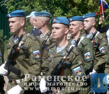 Праздничная колонна ветеранов-десантников, многие из которых были участниками боевых действий, нынешних представителей ВДВ и других родов войск, руководителей года и района, молодежи и просто жителей г.Раменское прошла по ул.Десантной и ул. 100-й Свирской дивизии к скверу им. Х.Л.Харазии, где у памятника воинам-десантникам состоялся торжественный митинг