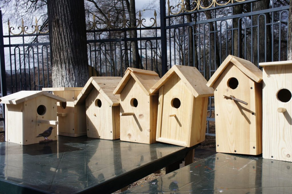 Дети и их родители принесли в парк скворечники, сделанные своими руками. А для тех, кто не озаботился конструированием птичьего домика заранее, организаторы заготовили комплекты для конструирования на месте.