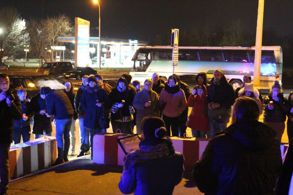 Участники почтили память жертв дорожно-транспортных происшествий минутой молчания, после возложили свечи к доске памяти с именами жертв ДТП.