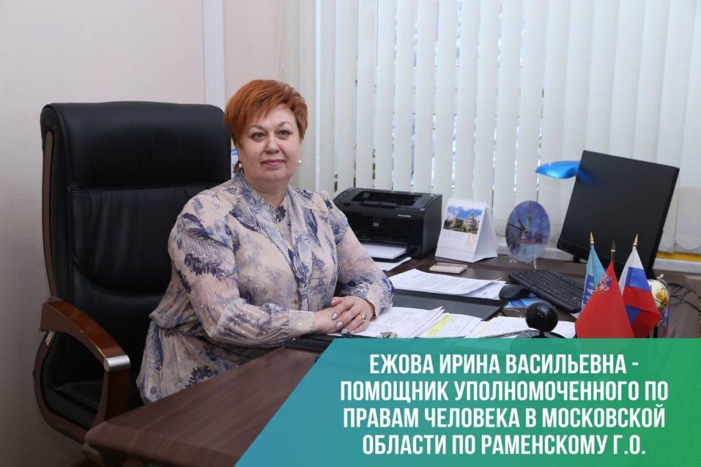 С 14 апреля текущего года помощником Уполномоченного по правам человека в Московской области по Раменскому городскому округу назначена Ежова Ирина Васильевна.