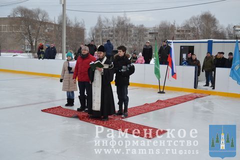 С этим знаменательным событием жителей поселения поздравил руководитель администрации Раменского района Андрей Кулаков. Хоккейную коробку освятил настоятель Никольского храма с.Малышево отец Серафим.