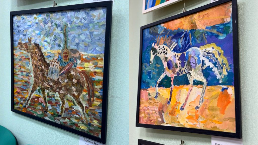 Все представленные на выставке полотна являются живописными работами, выполненными маслом на холсте. Для них характерна смелая и яркая манера письма, вдохновленная жанром импрессионизма, что придает картинам динамизм и выразительную эмоциональность. Центральными фигурами большинства произведений выступают благородные лошади и мифические Пегасы. В этих образах юные авторы воплощают свое восприятие грации, внутренней силы и новогоднего волшебства, а также темы мечты и свободы.