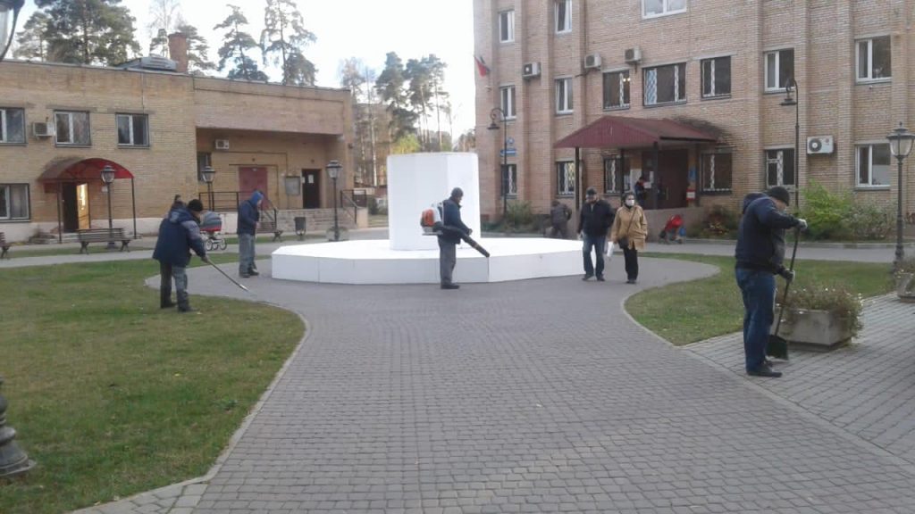 Осуществляется уборка территории посёлка от мусора , проводится уборка площадей, а так же проведены работы по консервации фонтанов (зимний период).