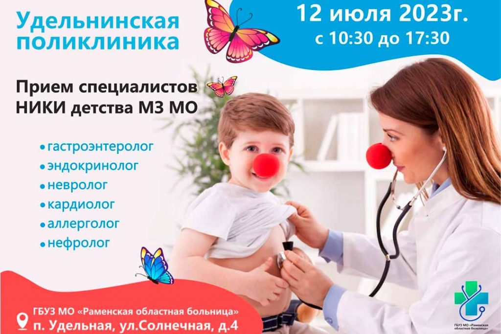 12 июля 2023г. с 10:30 до 17:30 передвижной медицинский автобус ГБУЗ МО «Научно-исследовательский клинический институт детства Министерства здравоохранения Московской области» осуществит выезд врачебного десанта к маленьким пациентам Удельнинской поликлиники.