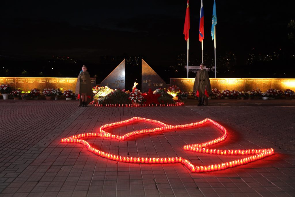 Ребята из Раменского молодёжного центра выложили Голубя мира на площади Победы.