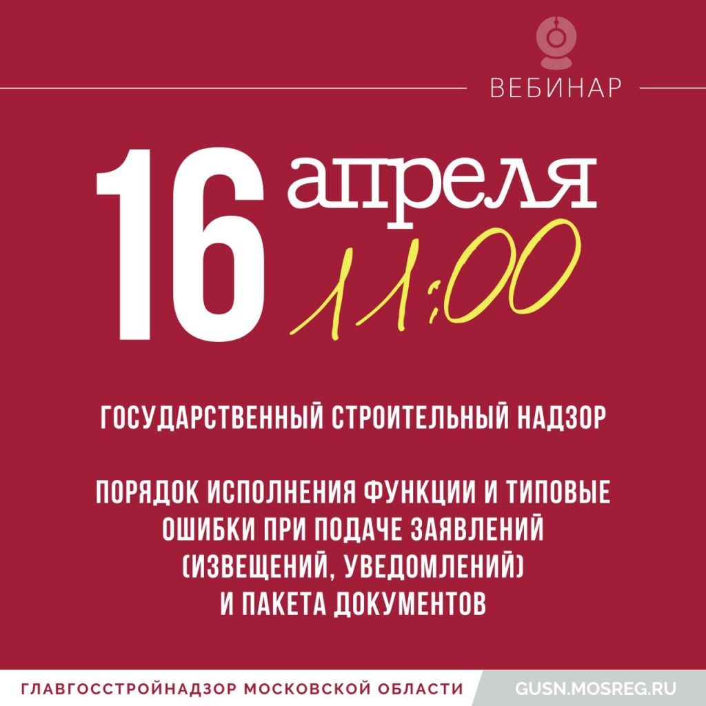 В 11:00 16 апреля 2020 года в Главном управлении государственного строительного надзора Московской области пройдет онлайн вебинар для застройщиков Раменского.