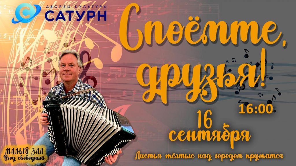 В МУК ДК «Сатурн» собираются гости, чтобы встретиться друг с другом в прекрасный субботний вечер, вместе спеть песни на разные темы, подарить себе и окружающим прекрасное настроение. Музыкальных тем много!