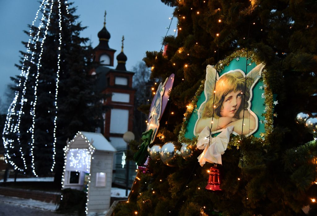 В украшении ели использованы оригинальные приемы: путеводная «Вифлеемская звезда» с деревянными резными украшениями в виде животных, которые являются своего рода природными талисманами на счастье, ангелы — выступают символами защитников и означают радостные известия, новости. Не меньшую роль играл выбор декора новогодних украшений: зелёный – символ вечной жизни, надежды и веры в лучшее. Белый цвет и пастельные оттенки розового, лимонного, фиолетового означают чистоту, нежность и честность. Серебро олицетворяет перемены и изменения. Все это своеобразная визитная карточка Рождества и Нового Года в поселке.