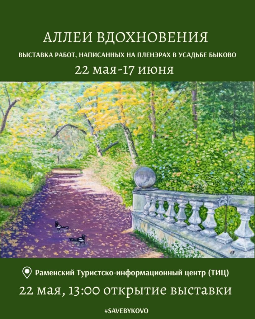 В Туристско-информационном центре «Раменское» 22 мая откроется выставка «Аллеи вдохновения» с работами лауреатов Сезона пленэров в усадьбе Быково 2024 года.