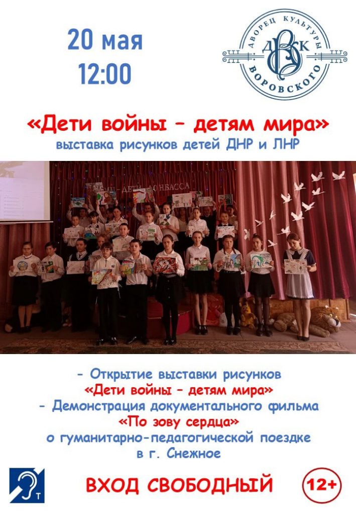 В ДК Воровского состоится открытие выставки рисунков «Дети войны — детям мира», где будут представлены работы детей из ДНР и ЛНР.