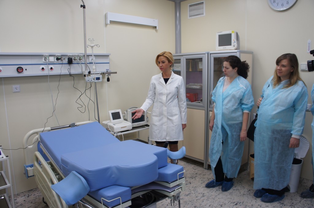 Беременные девушки вместе с Ириной Соладатовой, главным врачом Раменской ЦРБ Андреем Фадеевым и заведующими отделениями осмотрели приемное отделение, предродовые, родовые и послеродовые палаты, а также отделения детской реанимации.
