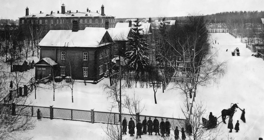 На фотографии 1900 г. — поселок бумагопрядильной и ткацкой фабрики села Раменское. Впереди в один ряд выстроились шесть деревянных домов. На генеральном плане фабричных построек Торгово-промышленного товарищества «П.Малютина сыновья» за 1900 г. они отмечены как «жилые домики двухэтажные».