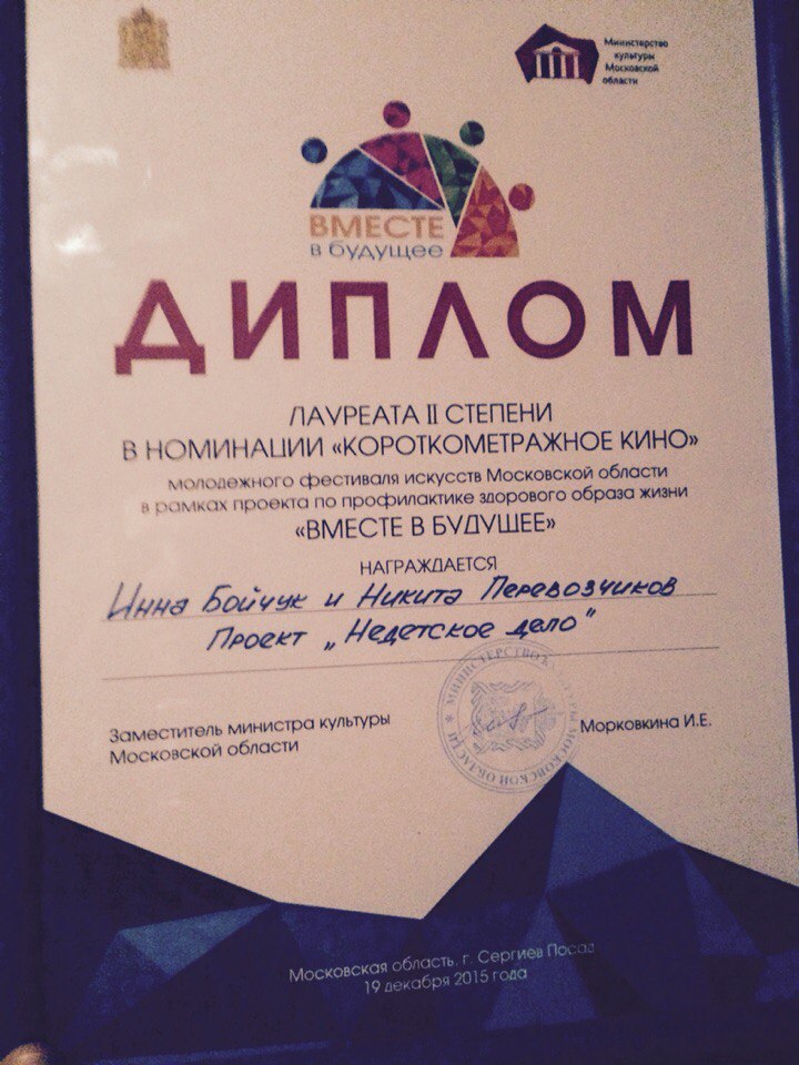 19 декабря на фестивале «Вместе в будущее» диплом лауреата второй степени в категории «Короткометражное кино» за проект «Недетское дело» вручили нашим землякам.