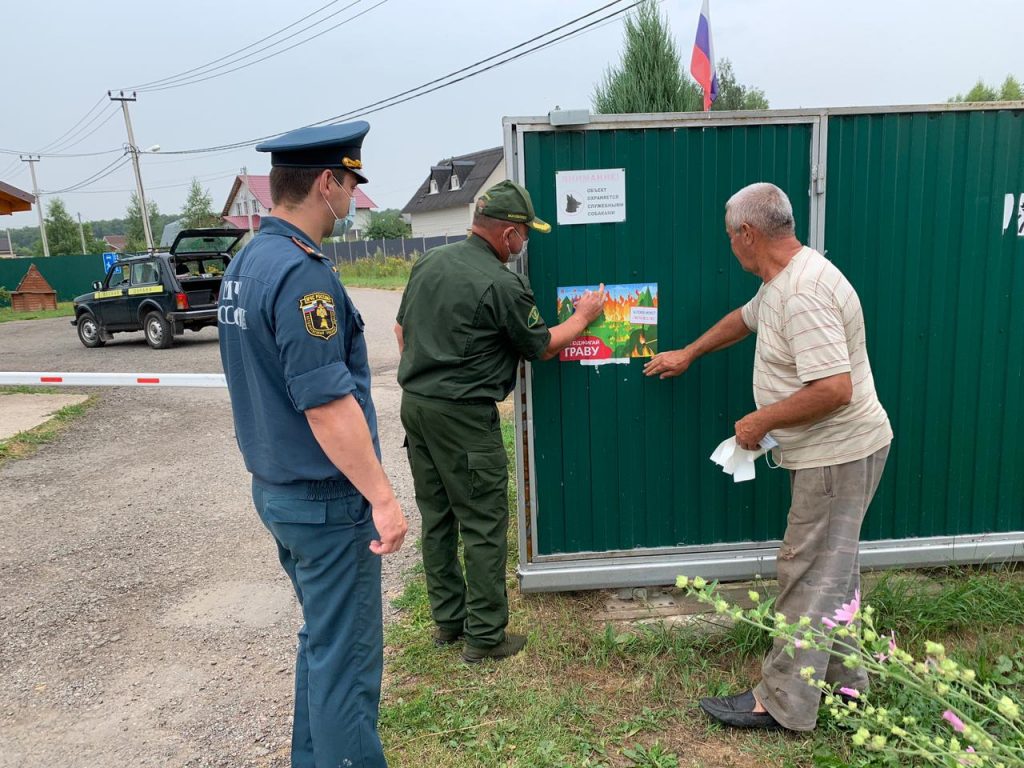 В связи с установившейся на территории Московской области сухой и жаркой погодой инспекторы напомнили гражданам о действии особого противопожарного режима и запрете на разведение открытого огня любого рода, а также на посещение лесов. Подробно разъяснили какая административная ответственность следует за нарушением правил пожарной безопасности в период действия особого противопожарного режима. Ещё инспекторы призвали граждан помнить о том, что в случае уничтожения огнём имущества или гибели людей в случае перехода огня на жилые постройки из-за не соблюдения правил пожарной безопасности наказание может последовать и в виде лишения свободы.